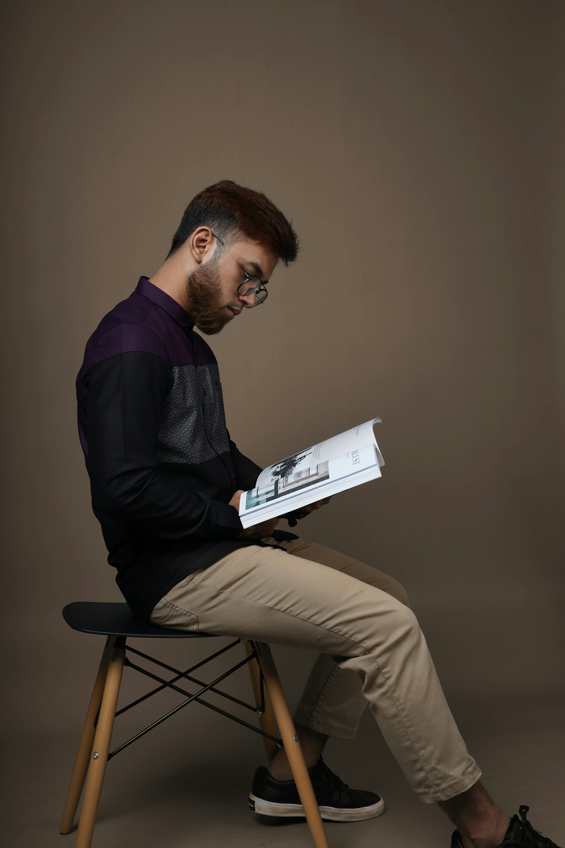 a man is talking on his cell phone while carrying a black bag